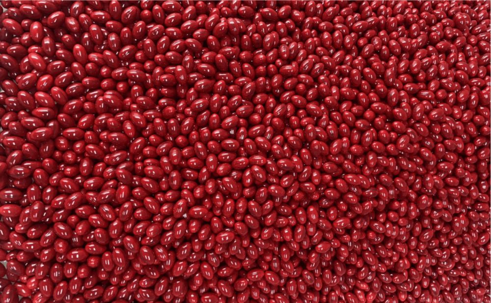 紅色動物性膠皮軟膠囊,內含高品質葉黃素原料,色澤鮮明,專業代工展現營養與美觀兼具。